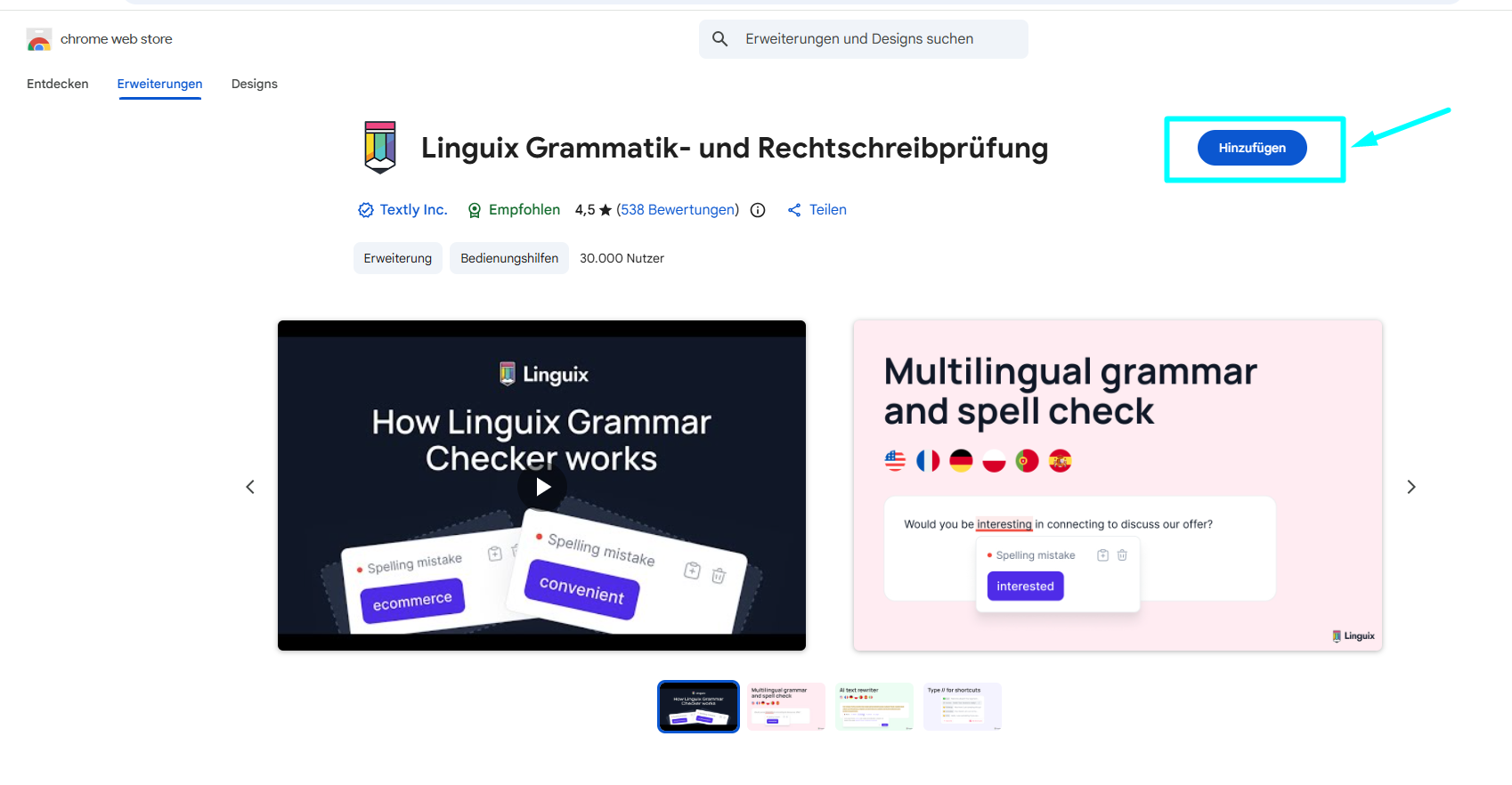 - Browser-Erweiterung mit Rechtschreib- und Stil-Vorschlägen in mehreren Sprachen.