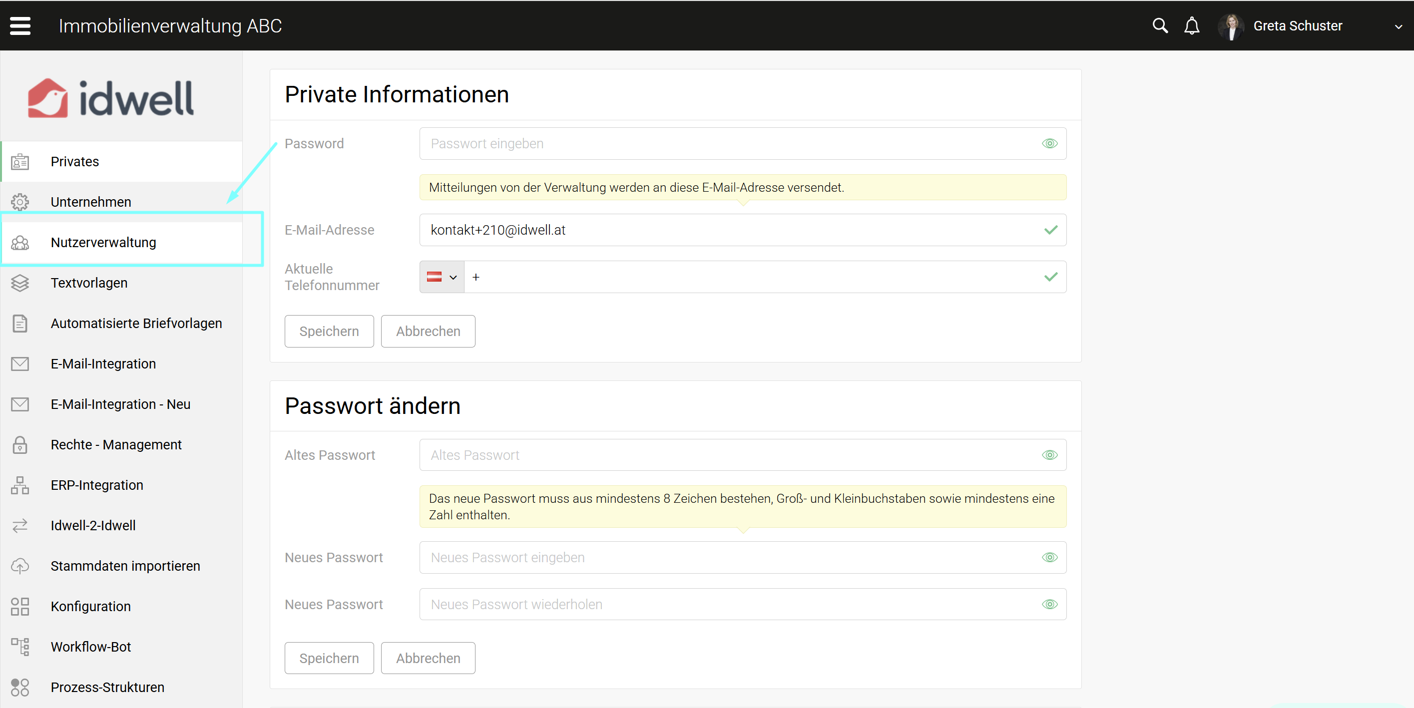 Klicken Sie nun auf der linken Seite auf den Reiter "Nutzerverwaltung".