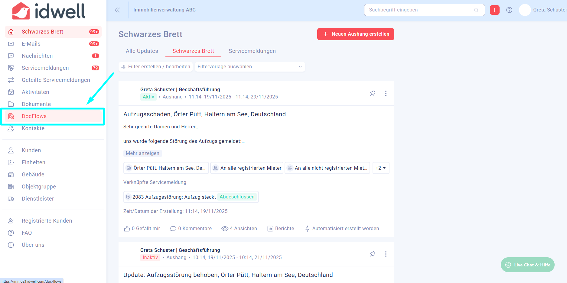 Öffnen Sie auf der linken Seite des Hauptsmenüs das Modul "DocFlows".