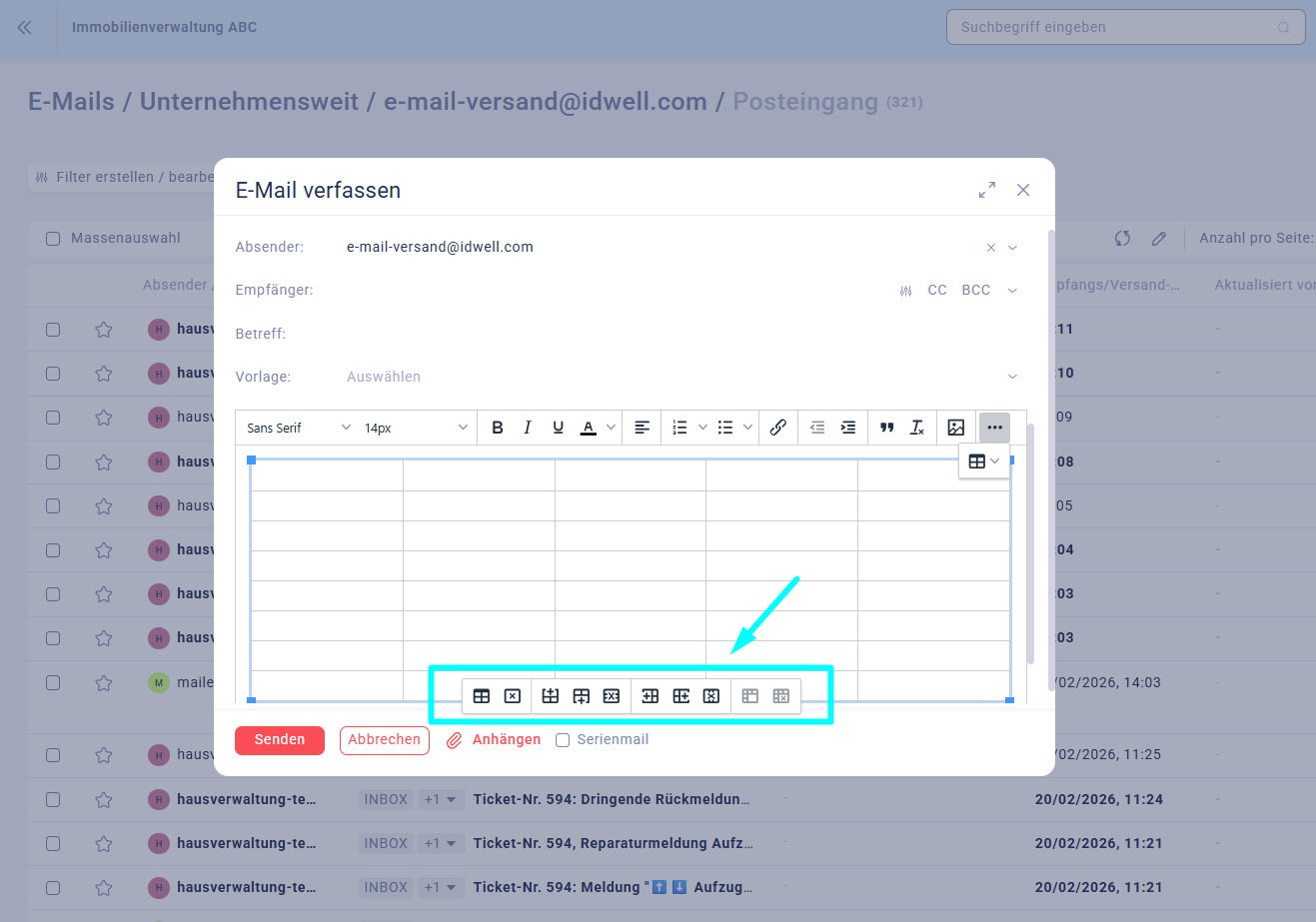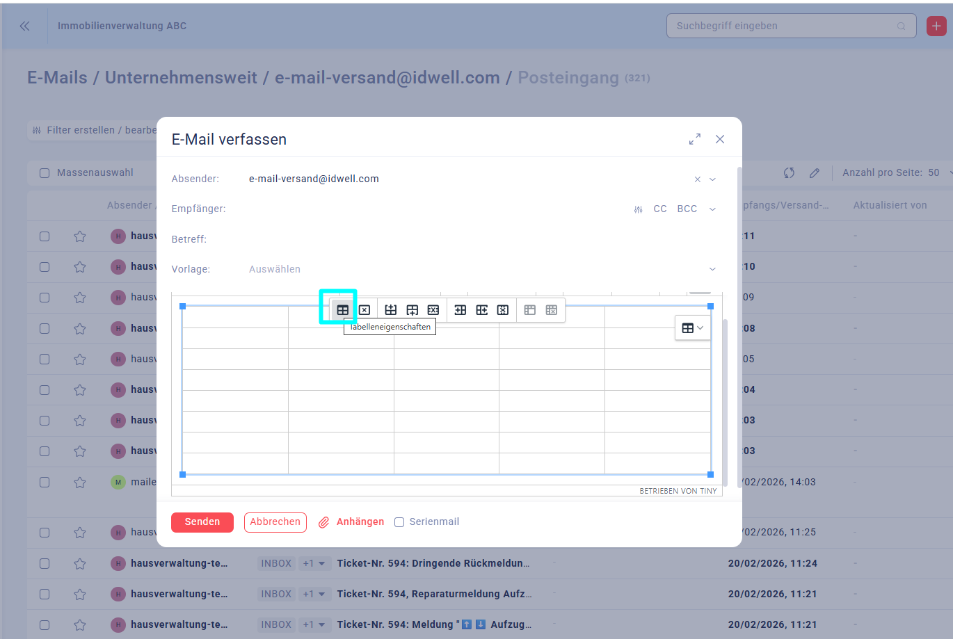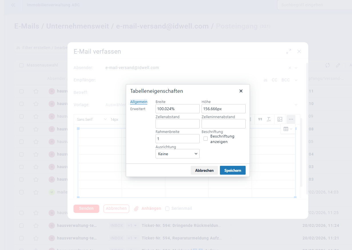 Wenn Sie ein E-Mail schreiben, können Sie über das Tabellen-Symbol (Raster-Icon) ganz einfach eine Tabelle einfügen. Tabellen eignen sich besonders für Termine, Preisübersichten oder Aufgabenlisten und sorgen für eine übersichtliche Darstellung.