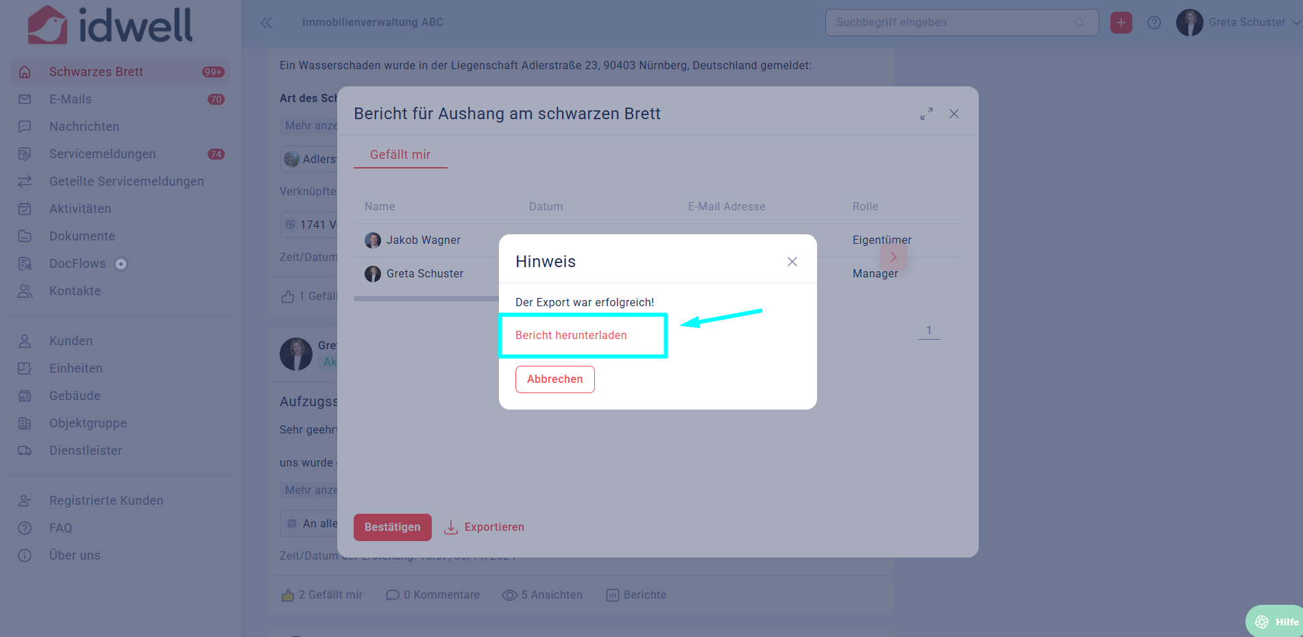 Klicken Sie auf "Bericht herunterladen", wenn dieser fertig exportiert wurde.