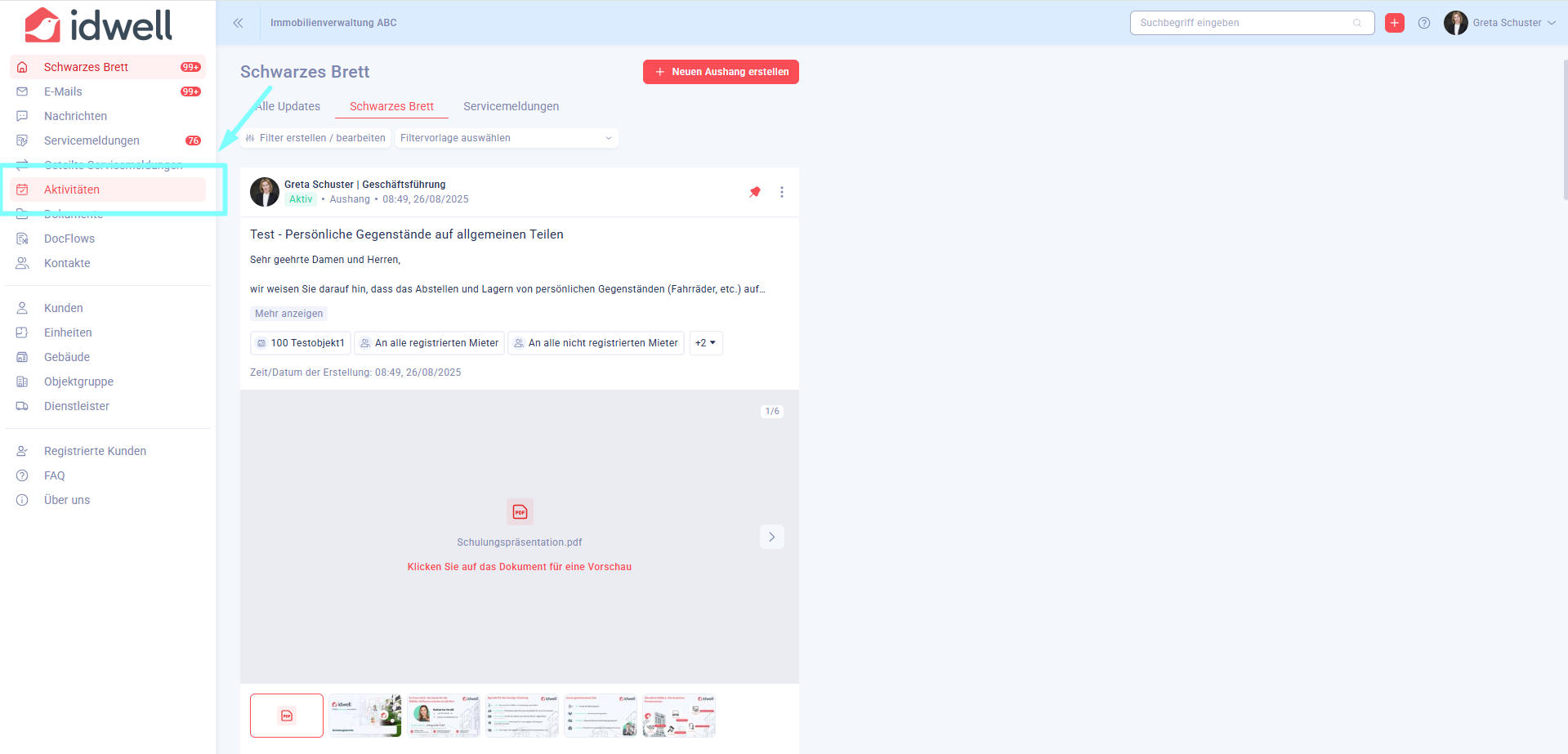 Bitte wählen Sie in der linken grauen Leiste das Menü “Aktivitäten” aus.