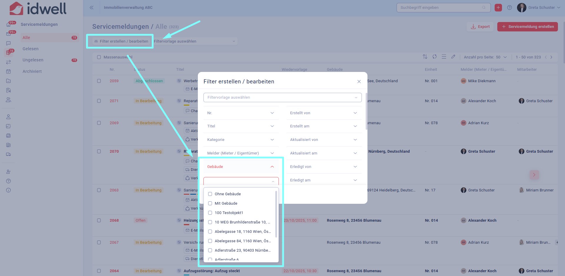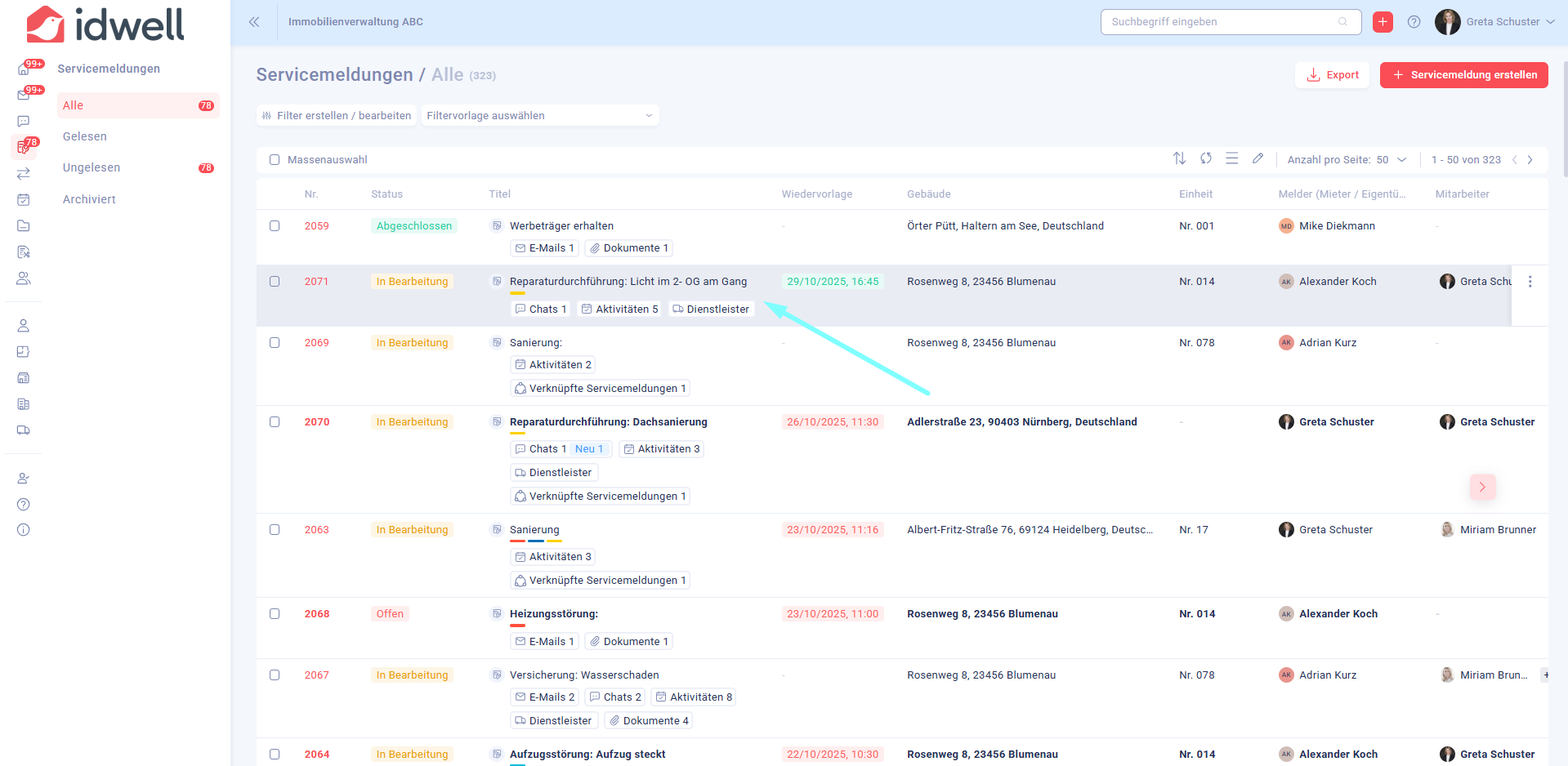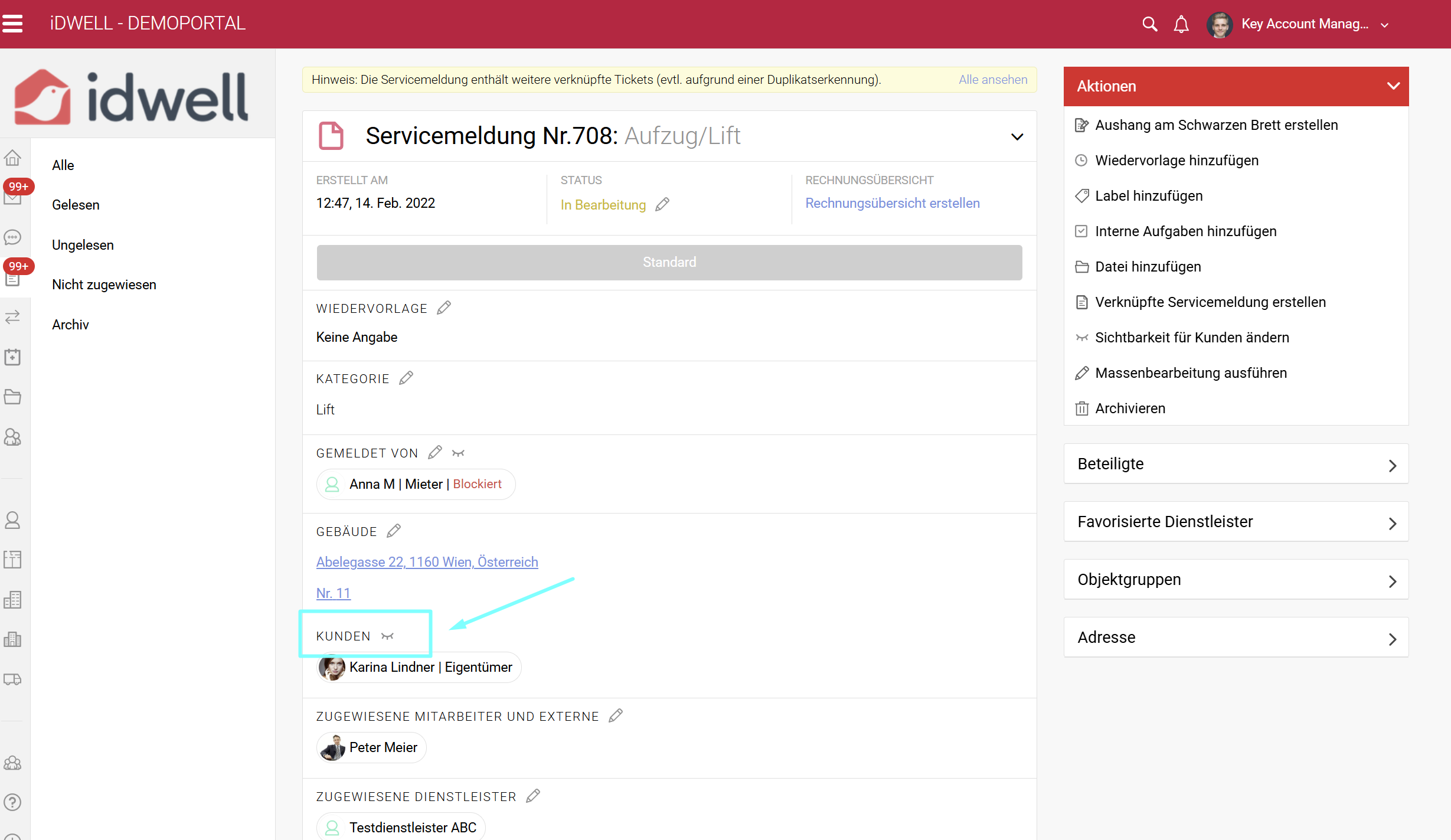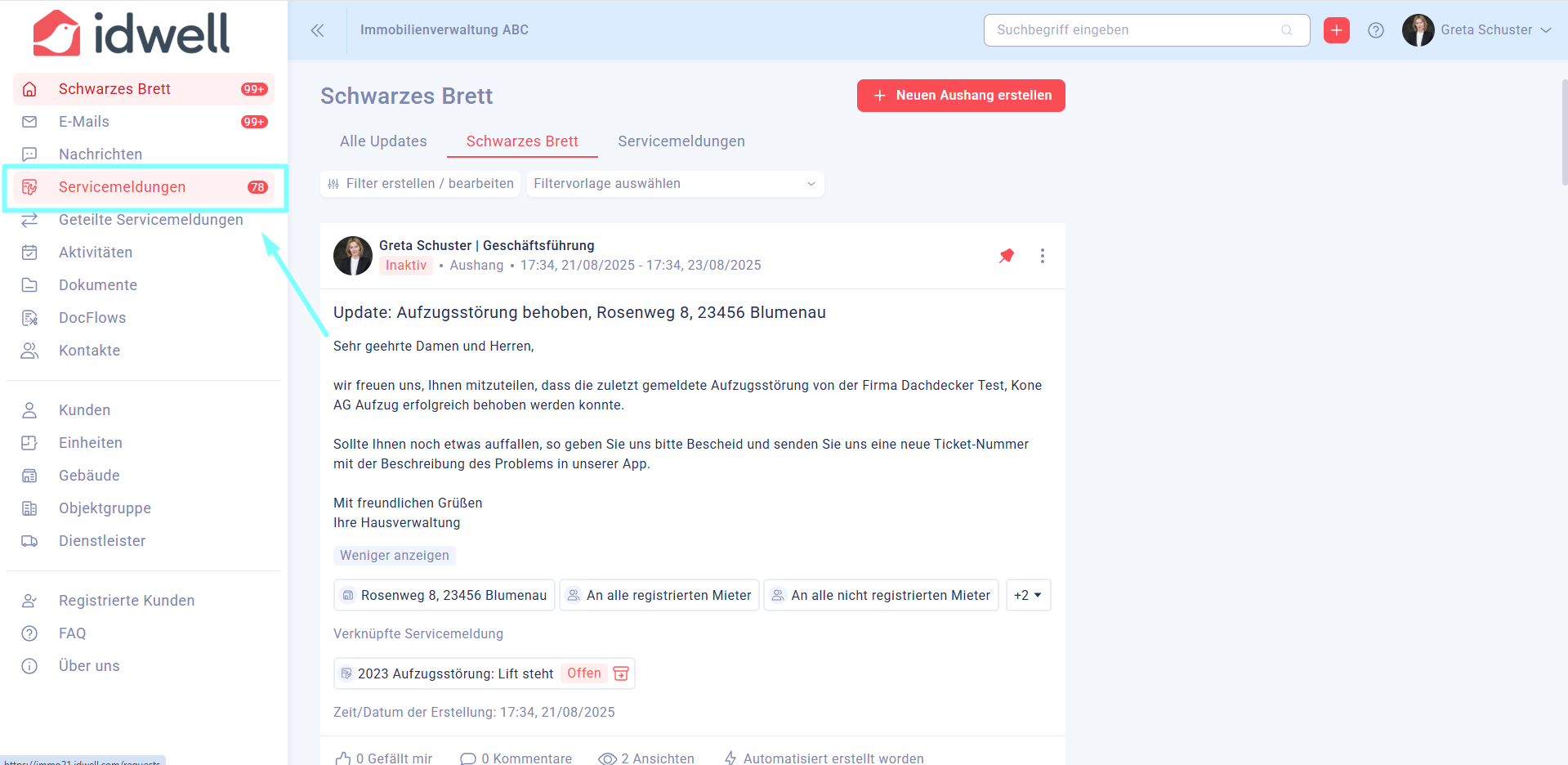 Sie können Servicemeldungen flexibel für Mieter oder Eigentümer sperren, auch wenn die Meldungen noch nicht archiviert worden sind. Dies ist besonders relevant für sensible Fälle wie Gerichtsprozesse, Mahnverfahren oder interne Themen, die nicht für Kunden sichtbar sein sollen.