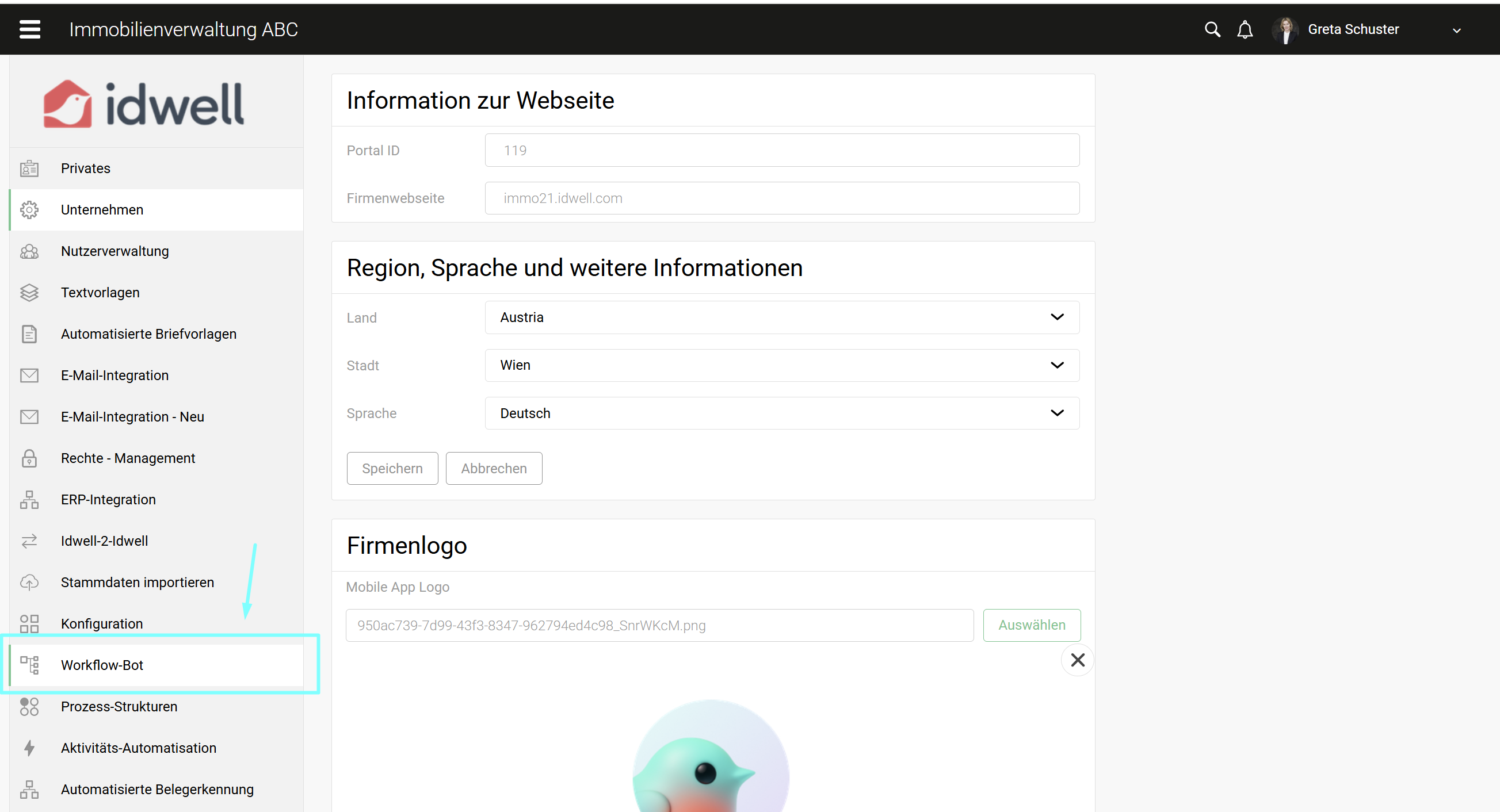 Wählen Sie links die Menüleiste “Unternehmen” aus und scrollen Sie nach unten.