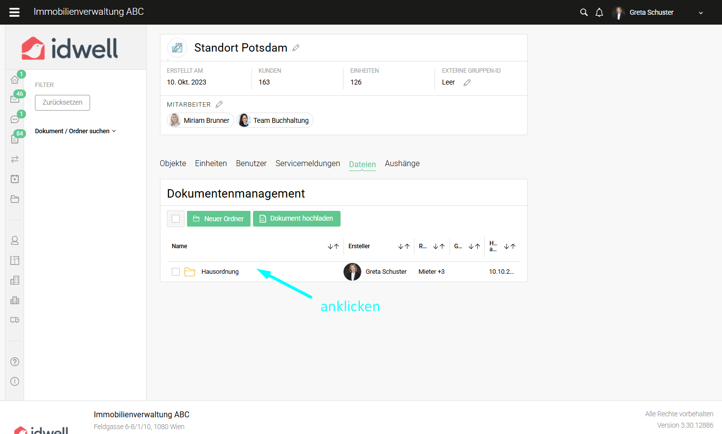 Klicken Sie nun in den Ordner hinein, um dort Dokumente zu hinterlegen.