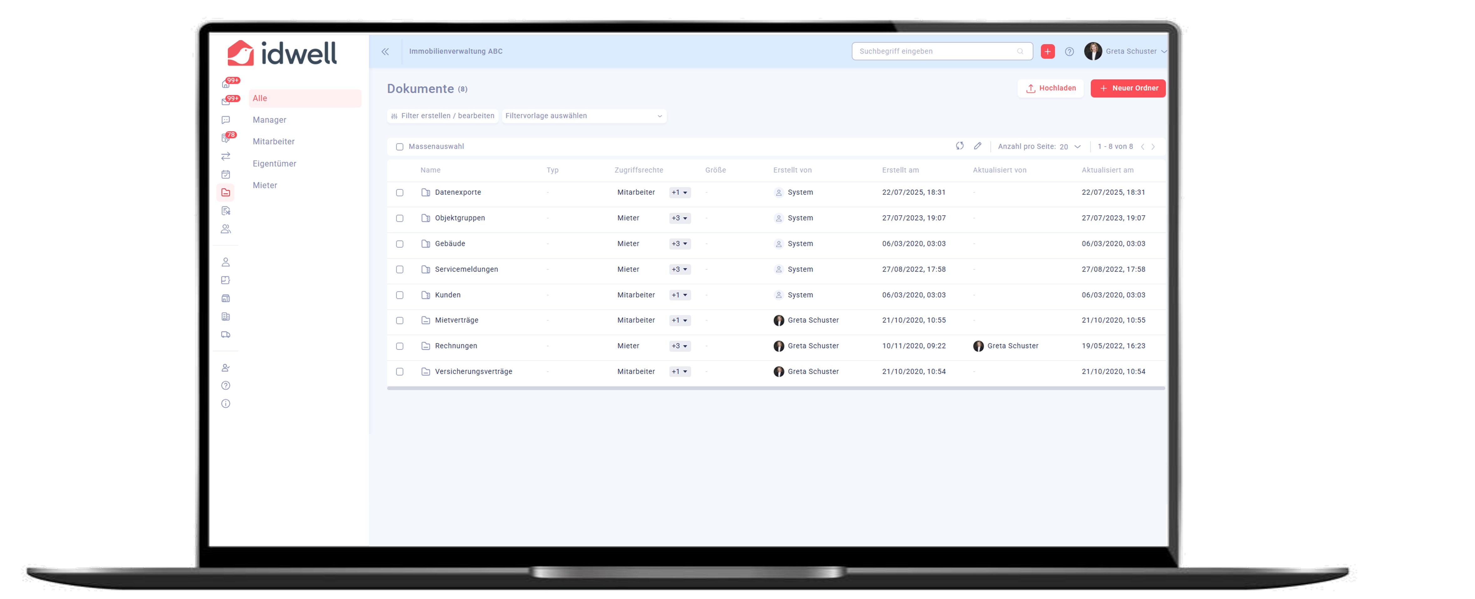 - Einheitliche Ordnerstrukturen: Schon bald können Sie einheitliche Ordnerstrukturen auf Gebäude-, Einheits- und Kundenebene gestalten und dadurch mehr Struktur im Portal schaffen.