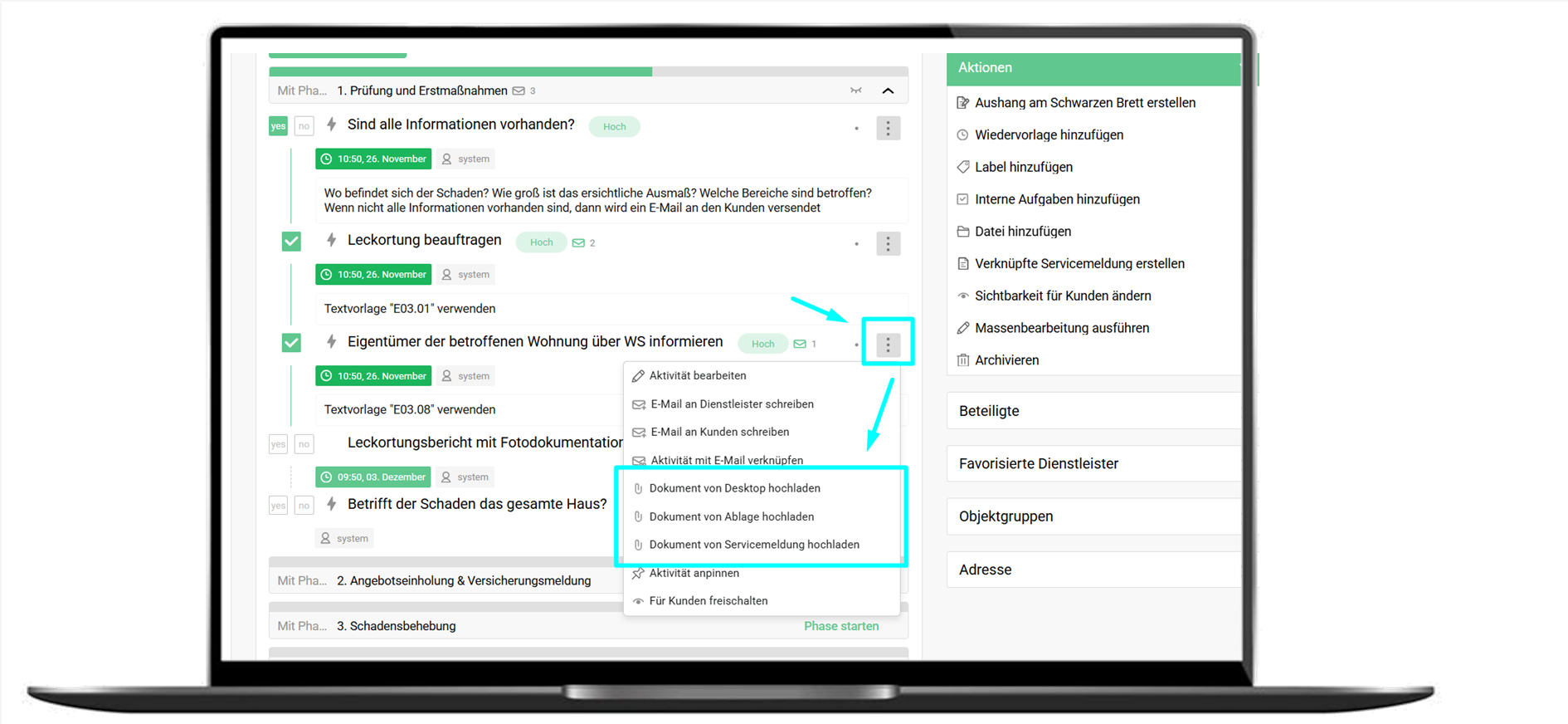 Dateien können Sie nun ohne Umwege direkt aus Servicemeldungen oder der iDWELL Dokumentenablage in die Aktivität.