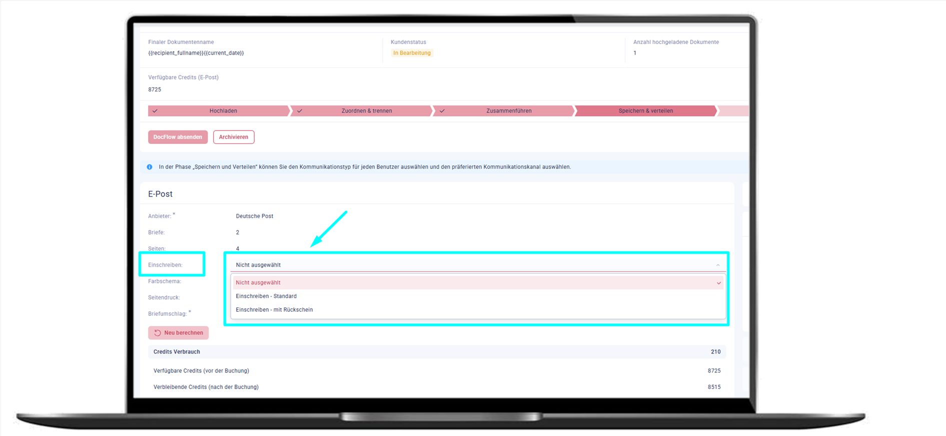 Wenn Sie bereits mit den DocFlows arbeiten, können Sie jetzt E-Post als Zusatzmodul aktivieren. Damit sparen Sie sich Drucken, Kuvertieren, Frankieren und den Postversand - alles passiert digital.
